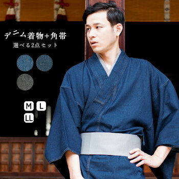 デニム着物 着物 角帯 セット メンズ 洗える着物 帯 デニム [選べる2点セット] 3色 [あす楽対応] 【 浴衣 大きいサイズ 綿 単衣 カジュアル おしゃれ お洒落着 きもの キモノ 木綿着物 着物帯 男帯 おび 和装 男性 紳士 送料無料 】